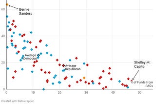Which Senators rely on PAC money? Which Senators are powered by small donations? The one chart that tells it all: